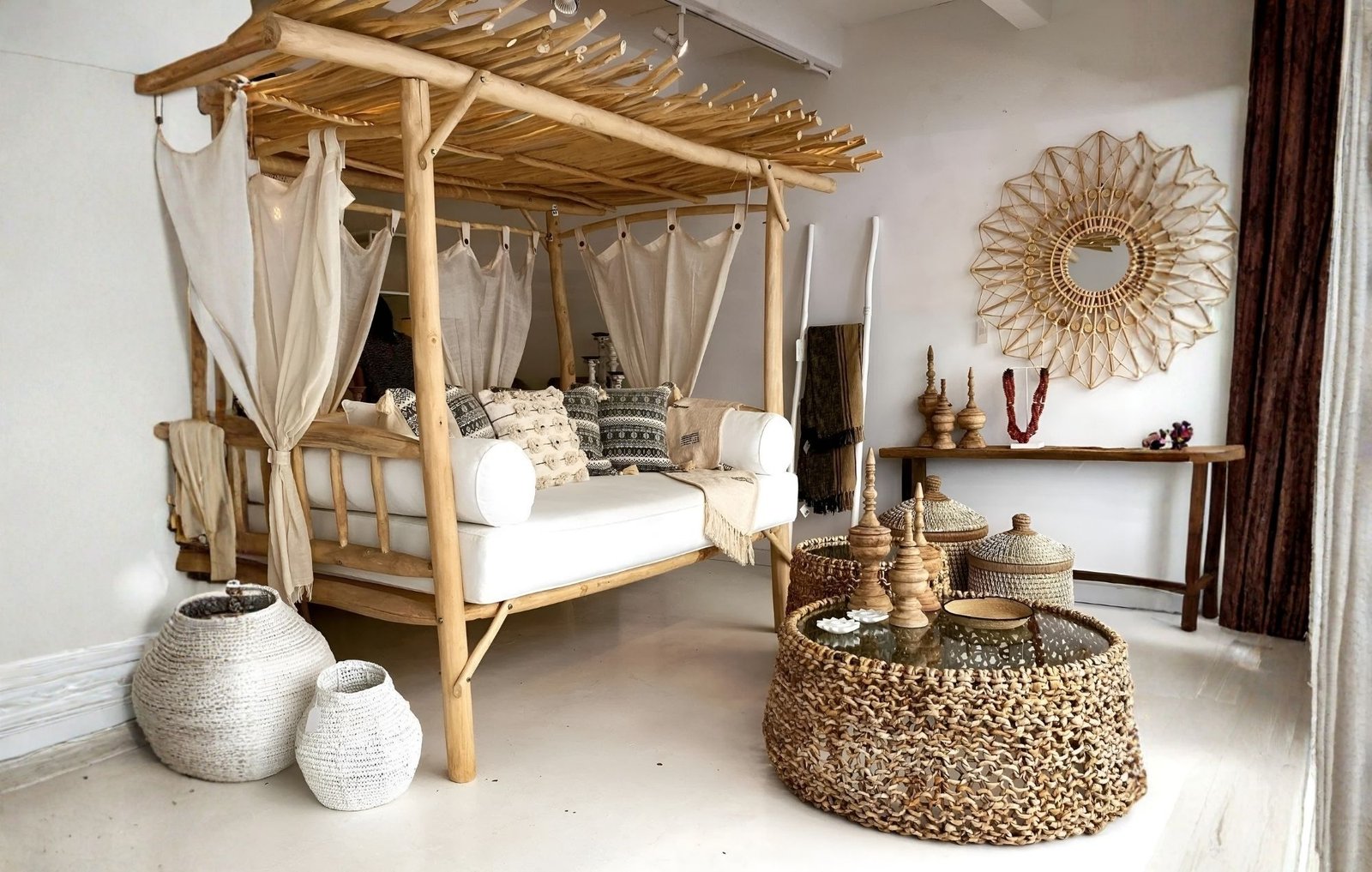Unique furniture pieces displaying the natural beauty of teak and branch wood. Each piece highlights organic textures and sustainable materials.