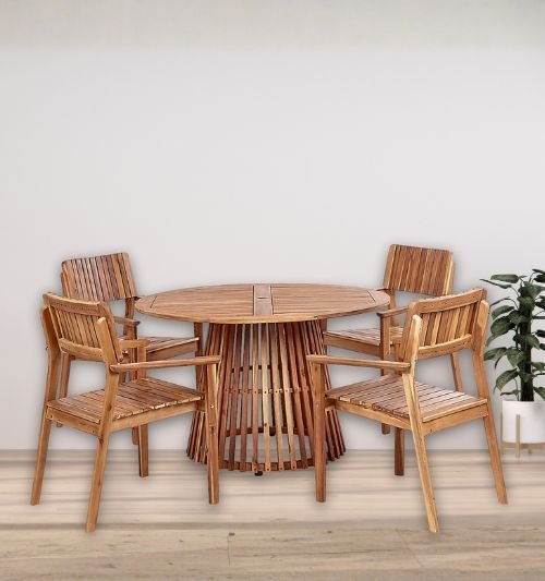 Complete dining sets that create a warm and inviting atmosphere, combining mahogany and mindi wood with excellent craftsmanship.